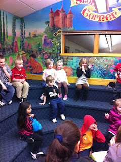 Fortunately this stumbling block didn't prevent us from going to Bingo Night. Ella was looking forward to it especially because we were taking Abbi too. They had a great time together and I enjoyed taking them out for a little girls night out. Abbi let Ella borrow a purse she could take to buy her bingo cards from. It was crazy crowded and we ended up finding some chairs in the back and we were lucky to get them. We sat near Mrs. Orkney which the girls loved. Ella won a bingo and picked out a $10 McDonalds gift card. I won an Amai gift card good for a mani or pedi. Keira didn't make it because she was busy screaming up a storm and being defiant while we were getting ready to go. While we were at Bingo Travis sent me a video. I think the poor baby was just tired and hungry. She mellowed out after Ella and I left, hence the video:) She says "Sorry mom but I'll be good." Awe!